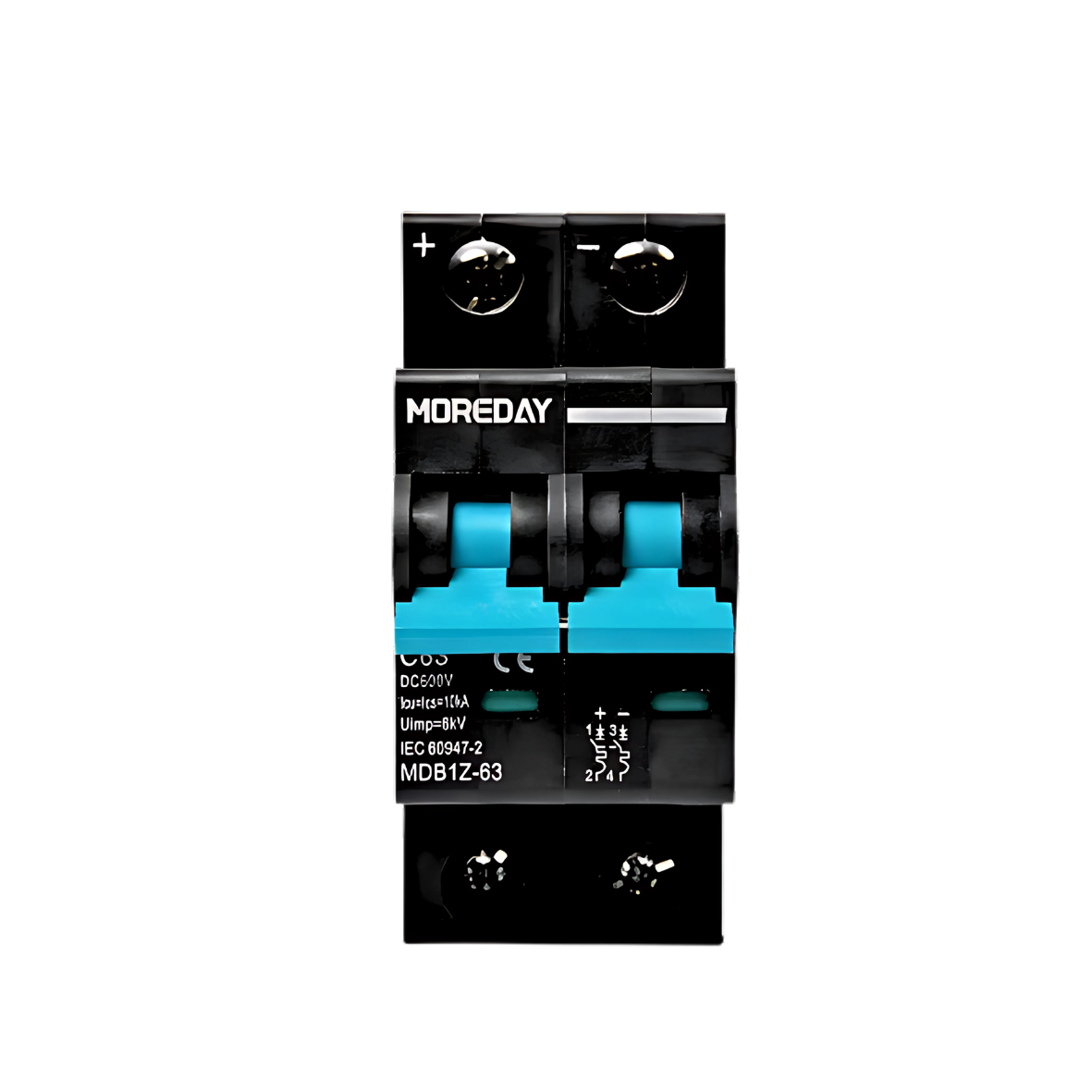 El interruptor miniatura de corriente continua MDB2Z-63 está diseñado específicamente para brindar protección eléctrica confiable en circuitos de corriente continua (DC). Su función principal es detectar e interrumpir rápidamente condiciones anormales, como sobrecargas o cortocircuitos, protegiendo así los equipos conectados y aumentando la seguridad del sistema.
