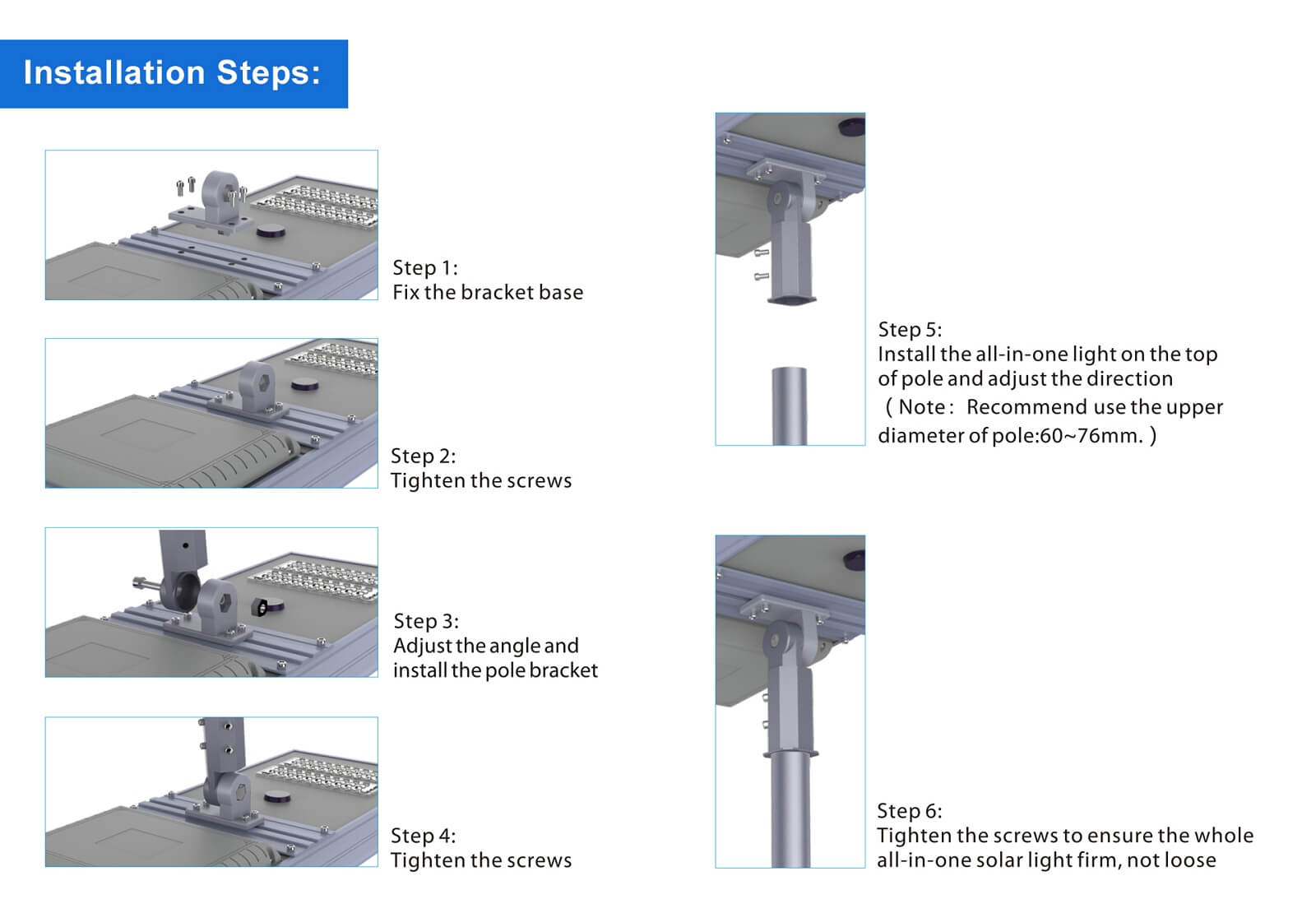 8. Soportes de alumbrado público solar todo en uno para personalizar