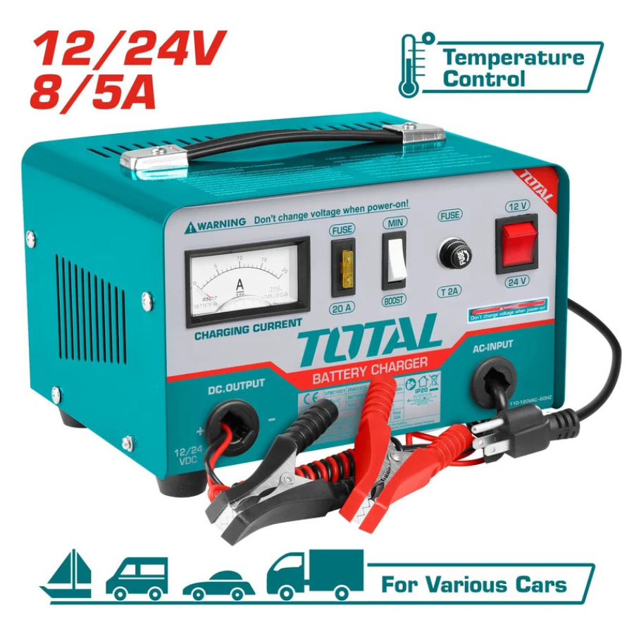 Carga eficiente y segura para baterías de 12V y 24V. Ideal para autos, motos y vehículos industriales. Tecnología confiable y de alto rendimiento.