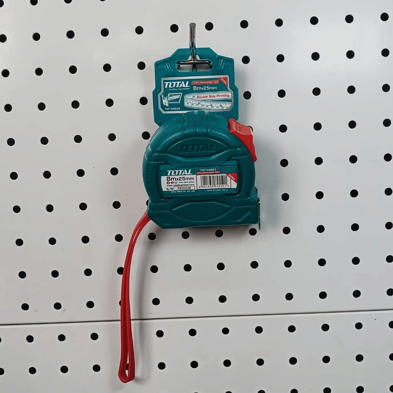 Cinta Métrica Total 8M x 25MM Pasta, precisión y resistencia para proyectos industriales, carpintería y construcción. Medición segura y confiable