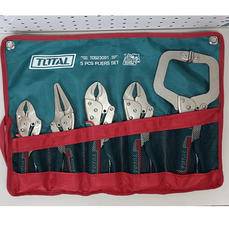 El Juego de Alicates de Presión TOTAL de 5 piezas es la elección perfecta para profesionales que buscan versatilidad, precisión y durabilidad en sus trabajos. Este set incluye herramientas de diferentes formas y tamaños, pensadas para ofrecer ajuste firme, sujeción segura y control total en tareas de carpintería, mecánica, construcción e industria.