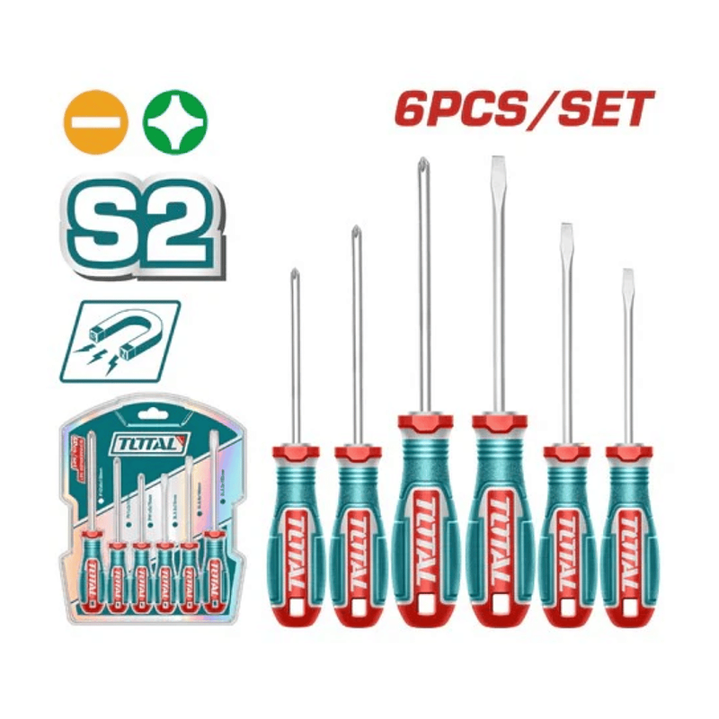 El Juego de Destornilladores Punta Imantada 6PZS TOTAL está diseñado para ofrecer precisión, comodidad y durabilidad en cada tarea. Sus puntas imantadas permiten sostener los tornillos firmemente, facilitando el trabajo en espacios reducidos y asegurando ajustes rápidos y exactos.