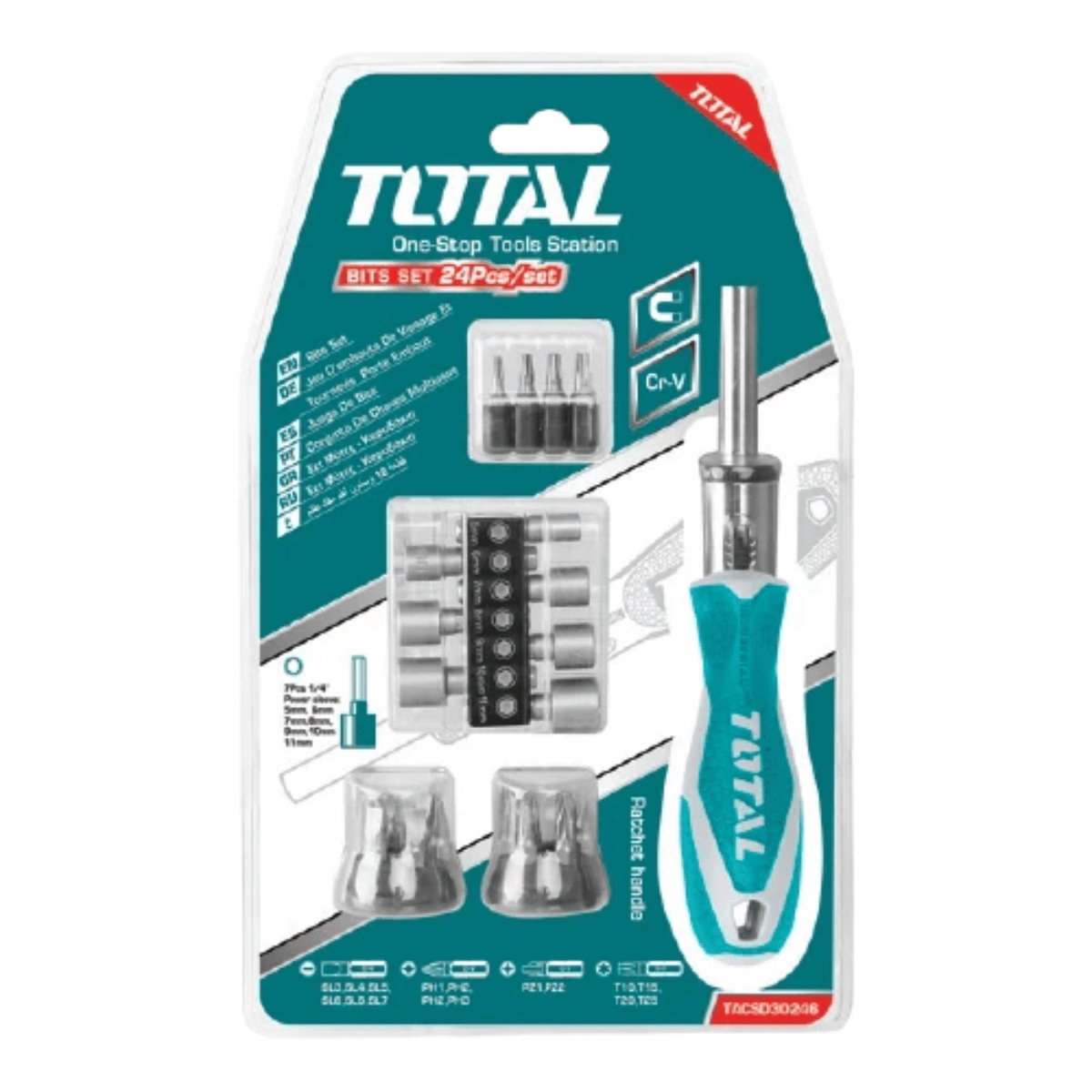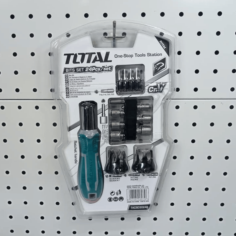 Kit profesional Total de 24 piezas con destornillador ractchet ergonómico, puntas resistentes para máxima precisión y durabilidad