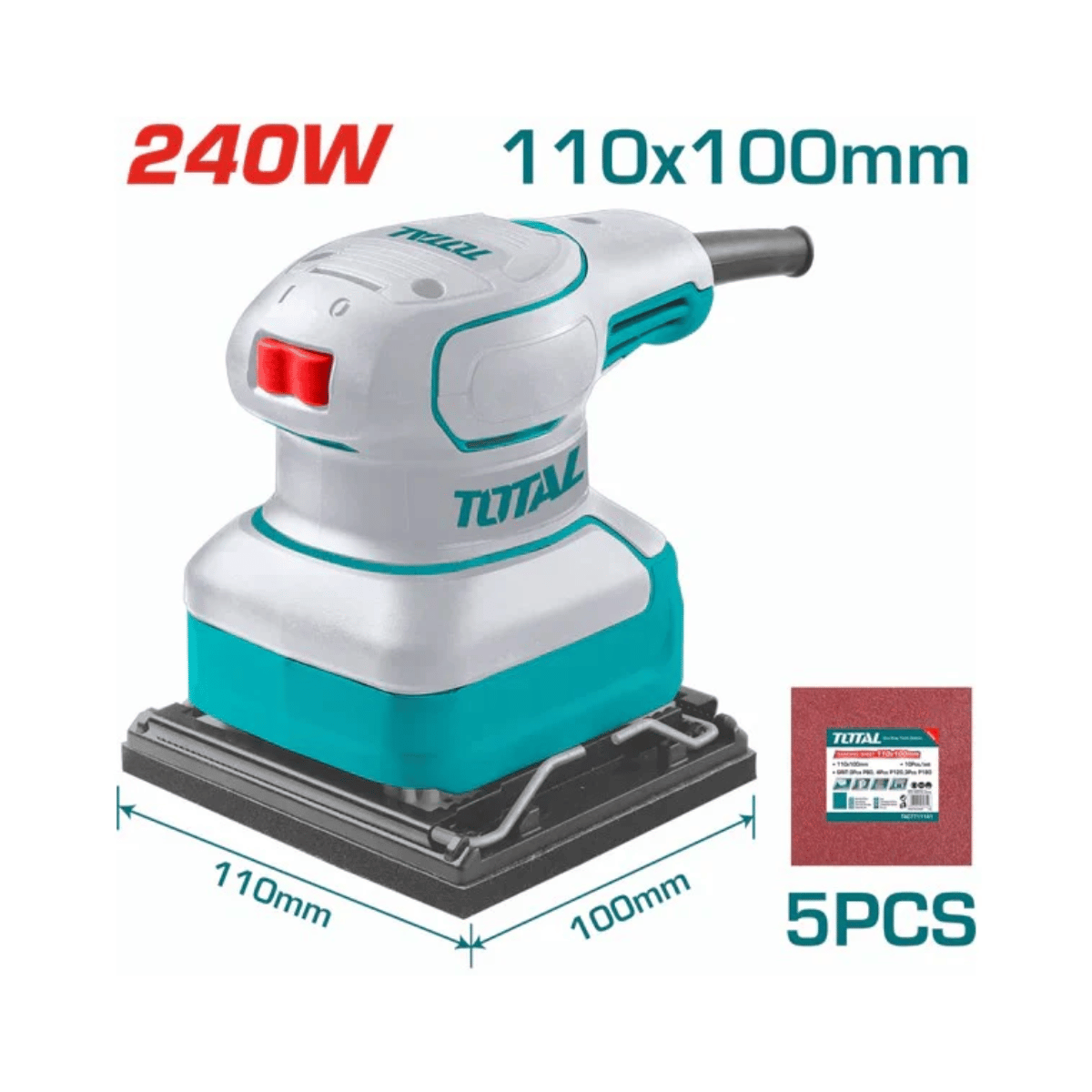 Con la Lijadora de Palma Industrial TOTAL 240W 4 3/8" x 4", obtienes una herramienta potente, precisa y confiable, diseñada para profesionales que exigen acabados de alto nivel en cada proyecto.