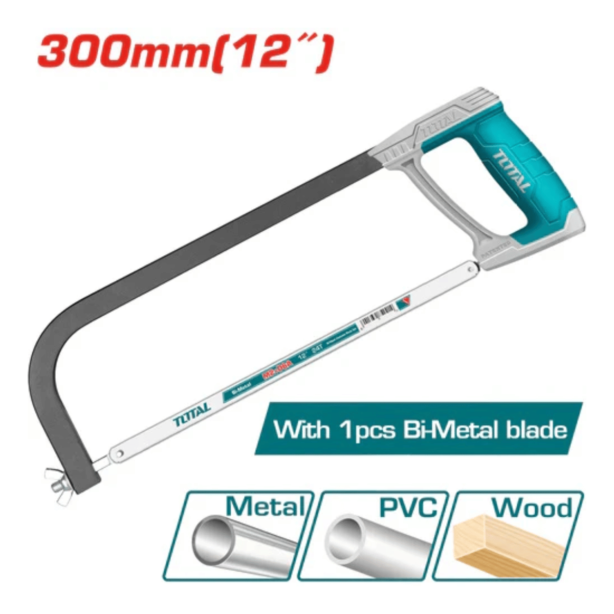 Marco de Segueta TOTAL 12": estructura industrial, ajuste firme, cortes precisos en metal y plástico, ideal para talleres y obras profesionales.