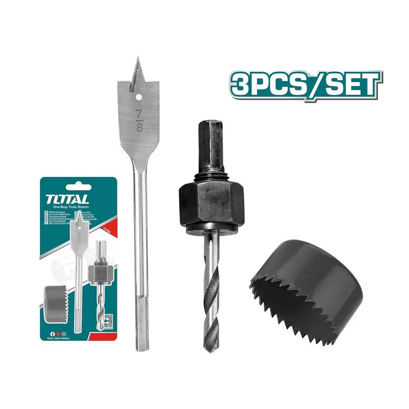 Ha sido diseñada para ofrecer precisión, resistencia y versatilidad en perforaciones sobre madera y metal. Este set incluye una sierra de acero al carbono de 54 mm, un adaptador de 3/8" y una broca plana de 7/8", que permiten realizar orificios limpios y exactos para instalaciones de tuberías, ductos, luminarias o trabajos eléctricos y de carpintería. Su empaque práctico facilita el almacenamiento y transporte, asegurando que las herramientas estén siempre disponibles y organizadas.