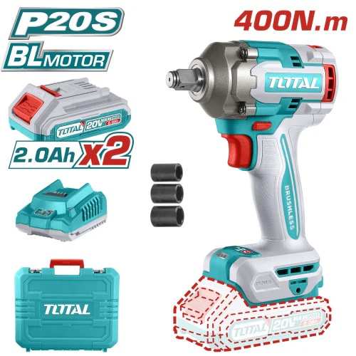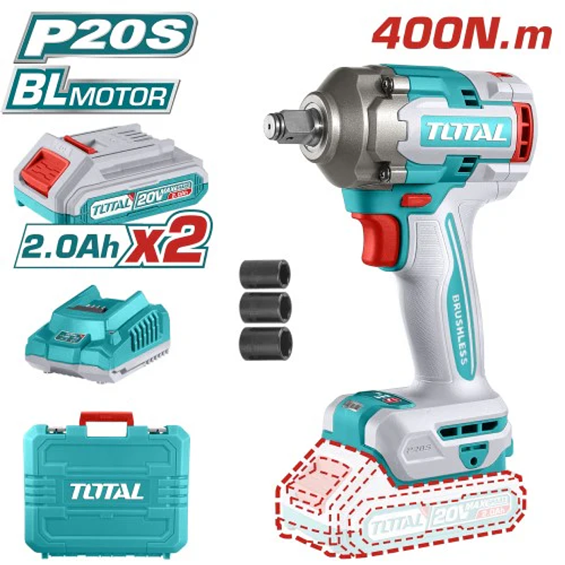 🔧 Características Principales — Llave de Impacto TOTAL 20V 1/2" (400 Nm + 2 Baterías)