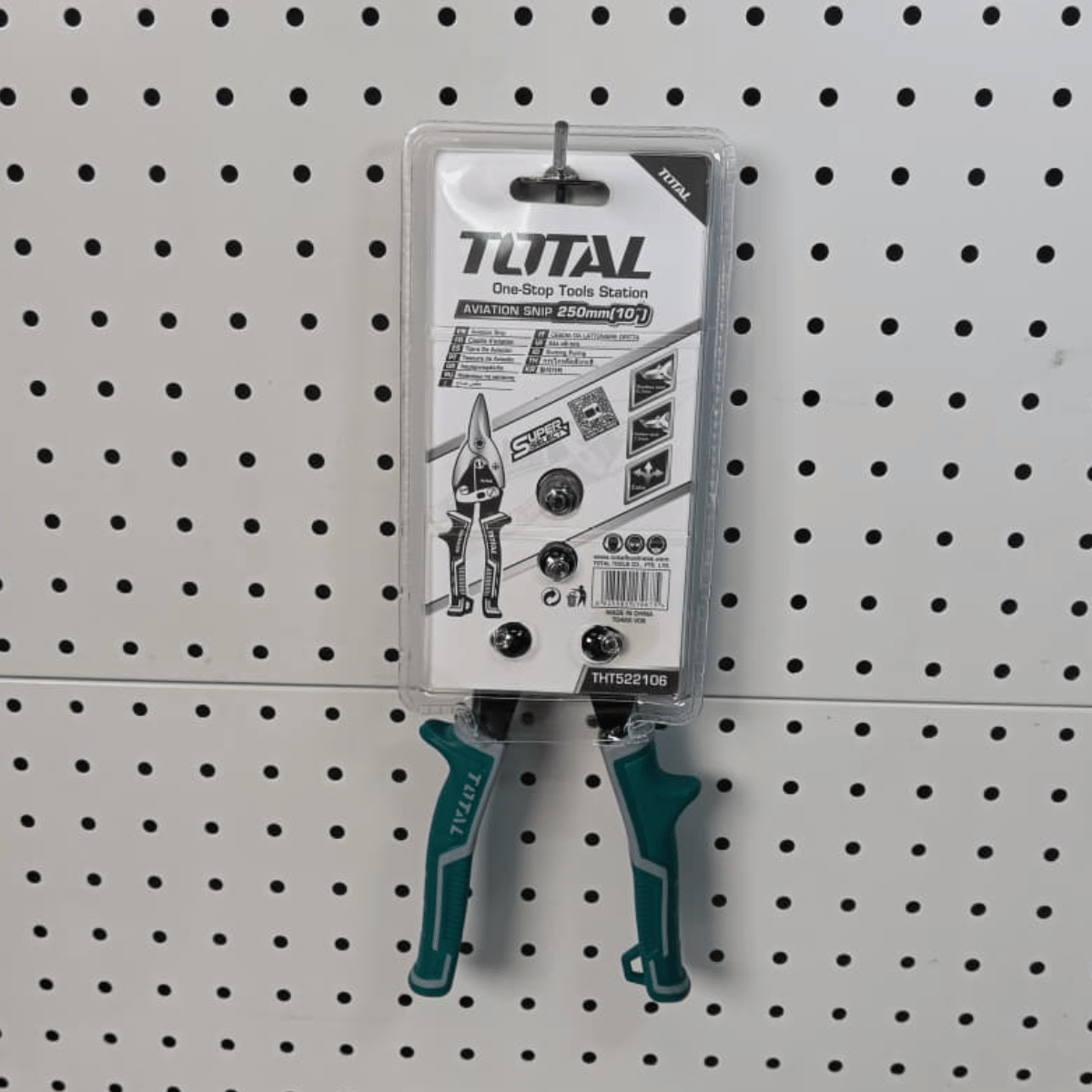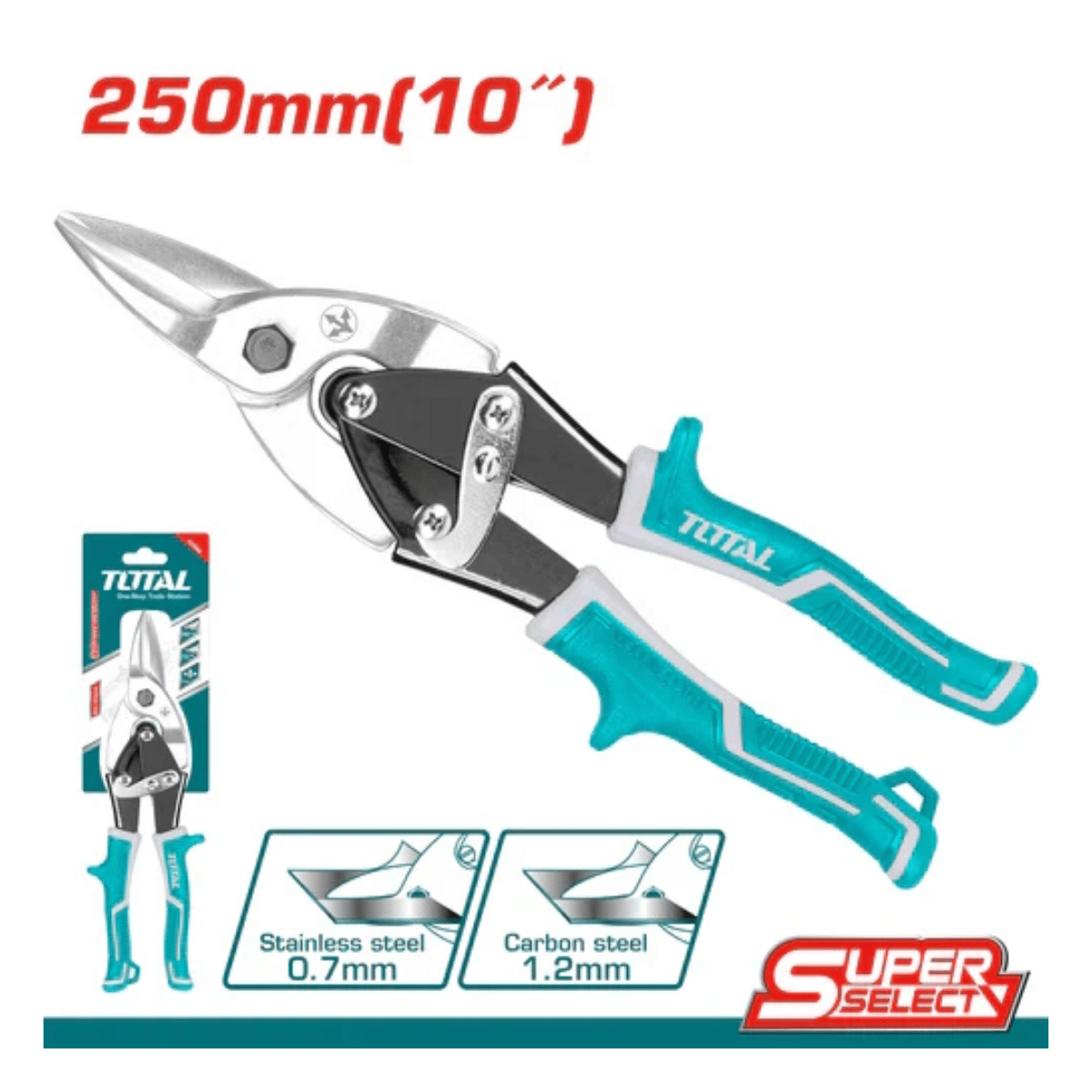 La Tijera de Aviación 10" TOTAL es la herramienta indispensable para profesionales que requieren precisión, resistencia y comodidad en cada corte. Diseñada para trabajos en láminas de metal, aluminio o acero delgado, esta tijera garantiza cortes rectos y limpios, optimizando la eficiencia en talleres, construcción y carpintería metálica.