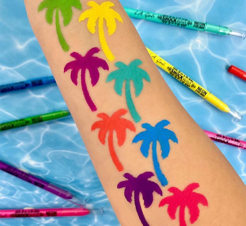 Delineadores neón disponible en tonos vivos, son de cobertura total, a prueba de agua y durabilidad de hasta 16 horas.