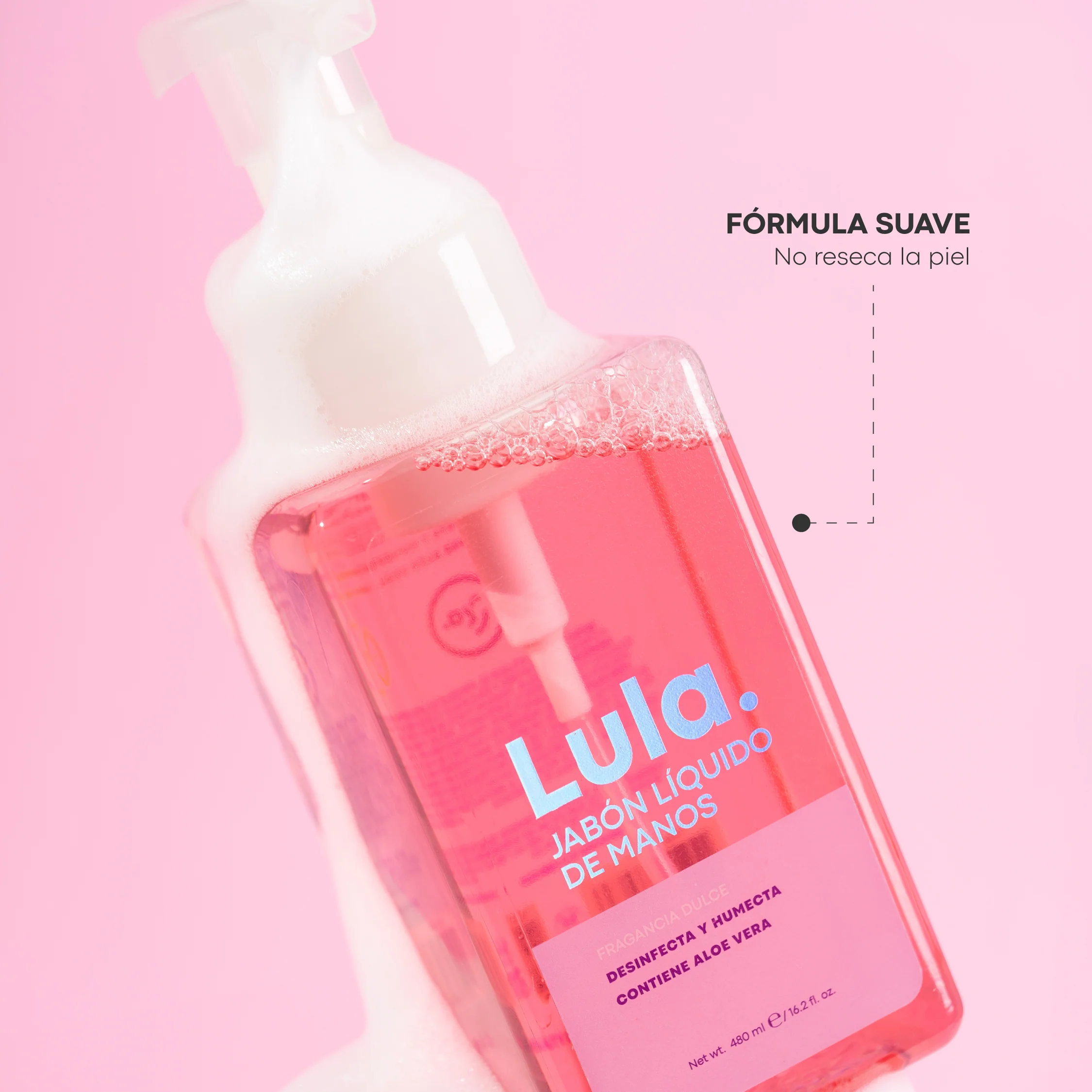 Su fórmula, enriquecida con los beneficios naturales del aloe vera, calma y protege, manteniendo las manos limpias y suaves incluso con el uso frecuente.