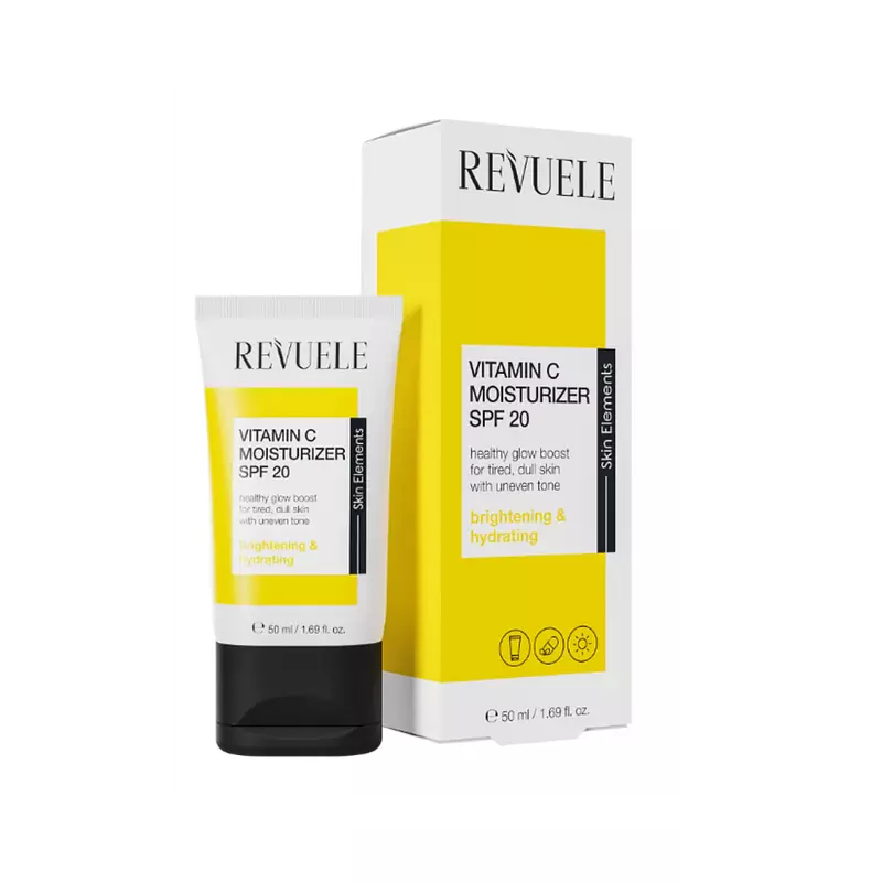 REVUELE VITAMIN C MOISTURIZER SPF 20 es una fórmula hidratante ligera rica en vitamina C antioxidante que ayuda a proteger la piel contra los radicales libres dañinos y el fotoenvejecimiento.