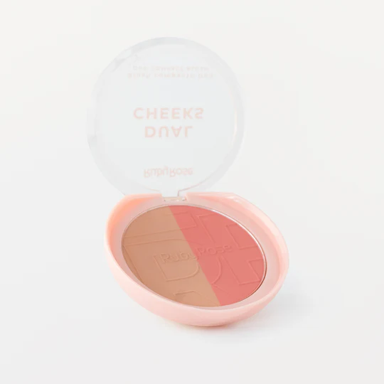 Transforma tu look con el colorete Dual Cheecks, el dúo perfecto para un acabado impecableya que su textura es ligera y suave.
