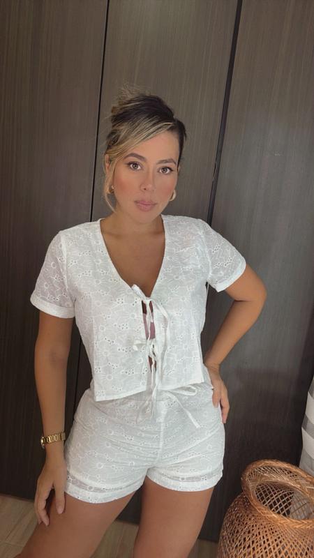 Set corto de blusa y short en hojalillo, muy lindo y fresco, ideal para un look femenino y con estilo.