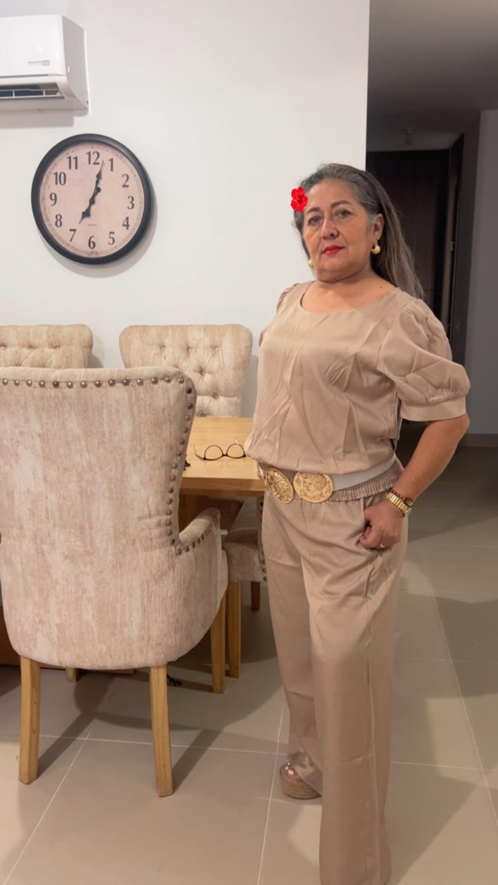 Set tan lindo en tela súper hermosa, fresco y cómodo. Diseño elegante y femenino en tono neutro, ideal para looks sofisticados y casuales en cualquier