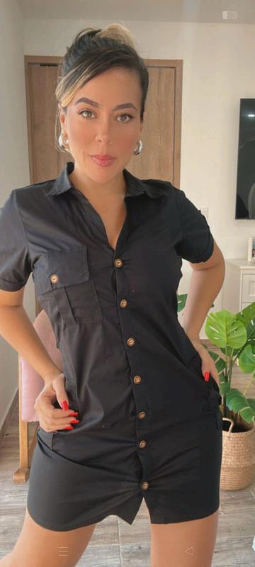 Vestido negro tipo cargo, moderno y versátil, con un estilo casual y cómodo ideal para un look urbano y con mucho estilo.🖤