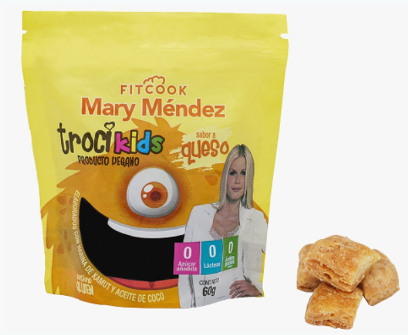 Pequeños pasabocas sabor a queso elaborados con harina de kamut y aceite de coco, sin azúcar, apto para veganos.