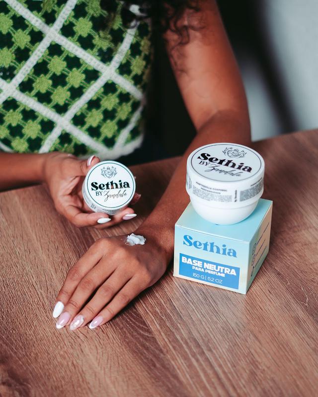 A diferencia de cremas o lociones perfumadas, Sethia tiene aroma neutro, lo que significa que no interfiere ni altera tu perfume: lo potencia.